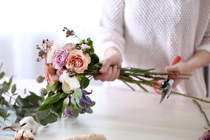 Une fois les fleurs choisies, il faut les préparer pour qu’elles puissent s’hydrater correctement. Il faut couper les tiges en biais avec un couteau bien aiguisé, pour augmenter la surface d’absorption d’eau. Il faut retirer les feuilles du bas des tiges, qui pourraient pourrir dans l’eau et favoriser le développement de bactéries. Il faut aussi éliminer les épines, les bourgeons ou les pétales flétris, qui nuisent à l’esthétique du bouquet. Cette étape est très importante, surtout pour les plantes grasses. Vous pouvez savoir plus sur le sujet en découvrant des conseils ici : Comment entretenir et arroser des plantes grasses ?