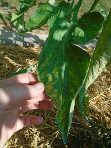 Dans mon cas, l’alternariose est restée cantonnée aux feuilles inférieures des semis de tomate.